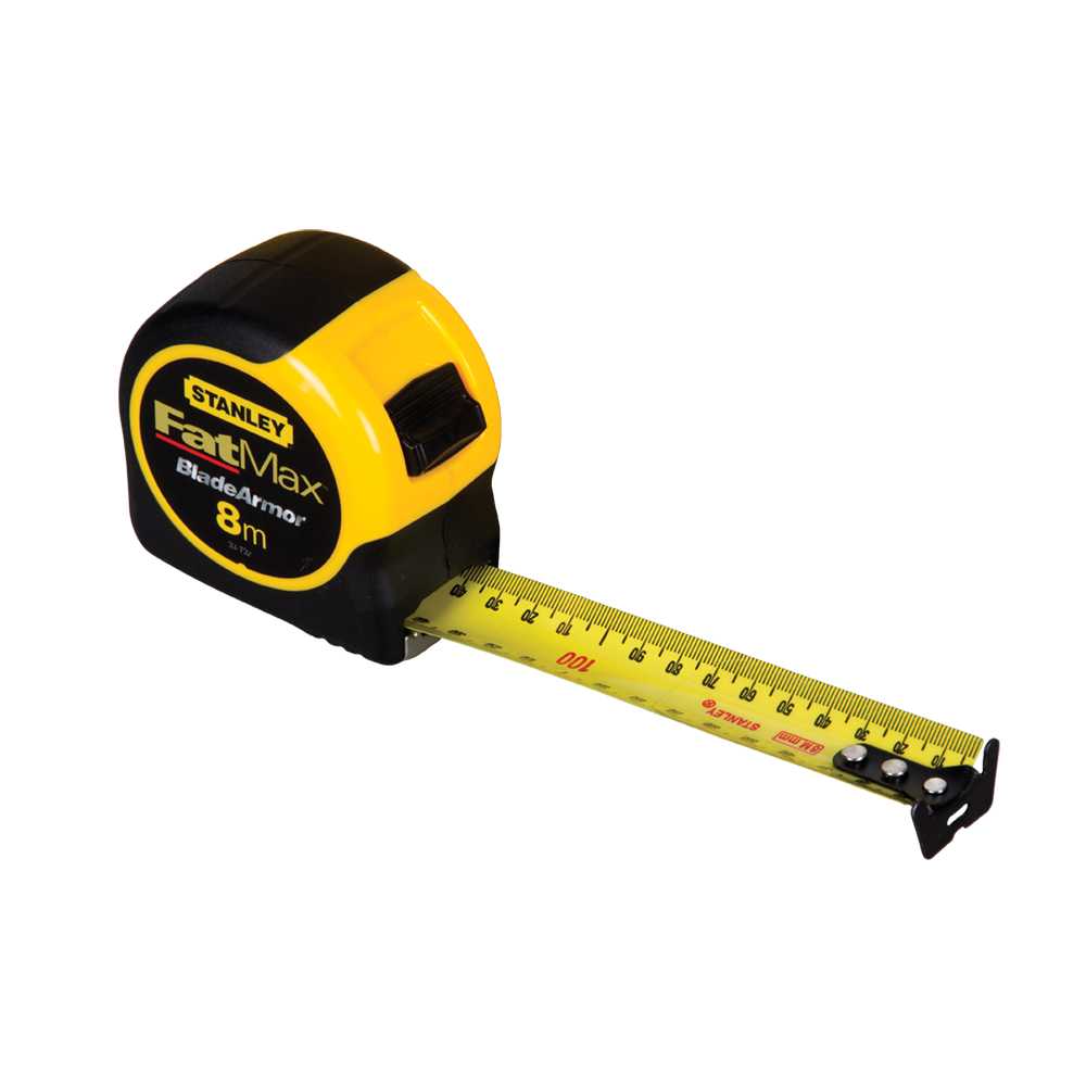 Built to last the Stanley 8m Fatmax Tape Measure uses Blade Armor a patented industrial thermoplastic coating for maximum durability and reduced blade breakage. Ideal for the industry professional and home DIY enthusiast alike. It has a cushion grip built into the case for a comfortable non-slip grip and better impact resistance.