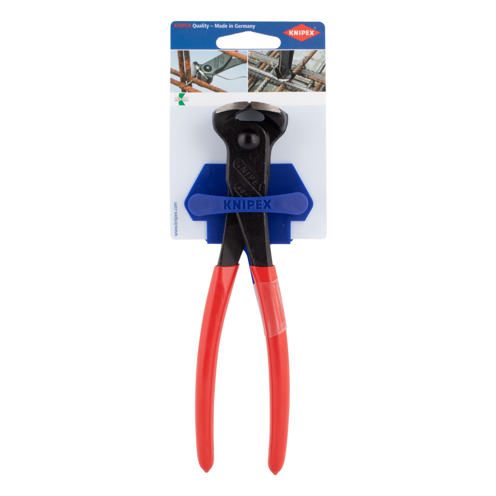 The Knipex End Cutting Nippers excel as indispensable tools in reinforced concrete work, boasting a head shape meticulously designed to enhance maneuverability while tightening steel mesh knots. Equipped with cutting edges tailored for both soft and hard wire, these nippers prove versatile, seamlessly transitioning between tasks such as twisting and cutting binding wire. The cutting edges undergo an additional hardening process, achieving a remarkable hardness of approximately 61 HRC. Crafted from high-grade special tool steel and forged with precision, these nippers epitomize durability. Their multi-stage oil-hardened construction ensures resilience, making them reliable companions for professionals in construction and related fields.