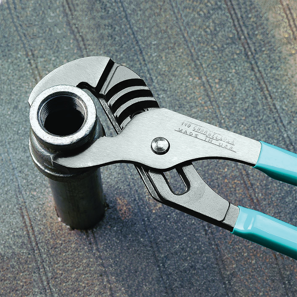 Channellock Straight Jaw Tongue & Groove Pliers are built to last with a Permalock fastener to eliminate nut and bolt failure, patented reinforcing edge to minimize stress breakage and laser-hardened teeth to provide a better, longer lasting grip. Channellock Straight Jaw Tongue & Groove Pliers are made in USA and forged from high carbon U.S. steel that is specially coated for ultimate rust prevention.