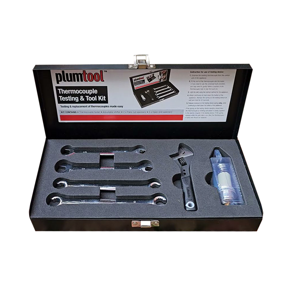 The Plumtool Thermocouple Testing and Tool Kit makes testing and replacing thermocouples simple and efficient. Supplied with a thermocouple tester, adjustable wrench, two flare nut spanners (8–11 mm) and two open-end spanners (8–11 mm), it has everything needed for the job. Designed for quick diagnosis, the tester confirms whether the issue lies with the thermocouple or the control, saving time and effort on site. A smart solution that avoids unnecessary replacements - perfect for plumbers and gas fitters.