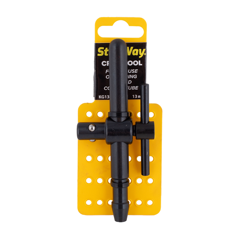 The Stanway Trade Crox Tool is designed to form a secure crox ring on copper pipes, holding a nut firmly in place and ensuring a reliable connection with other fittings. Twisting the handle expands the ball bearings, creating a lip inside the pipe to prevent the nut from slipping off. The tool features a round tapered end to keep the tube evenly round before use and is user-friendly in operation. Crafted from high-quality, durable materials for long tool life. Made in Britain.