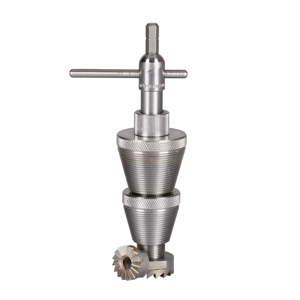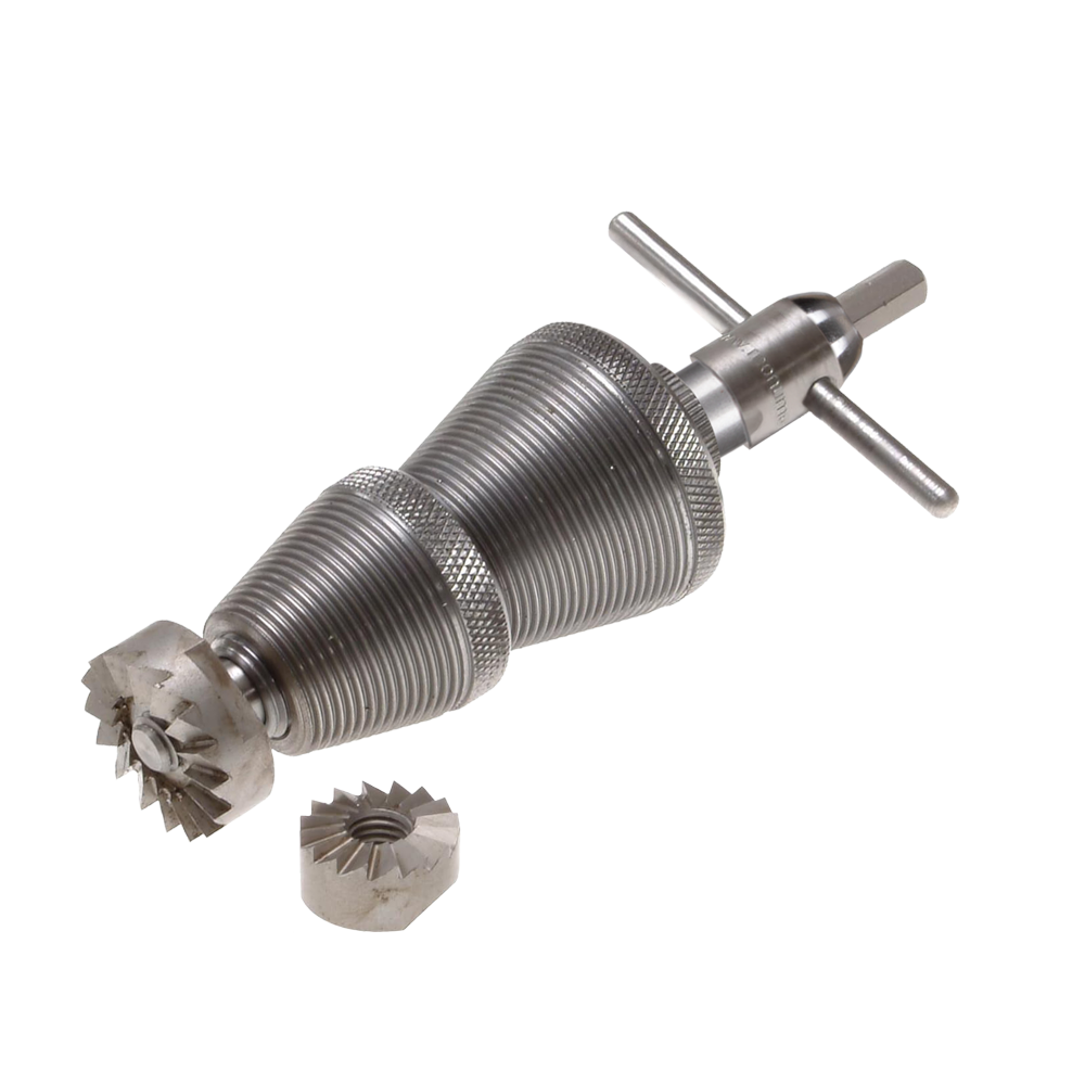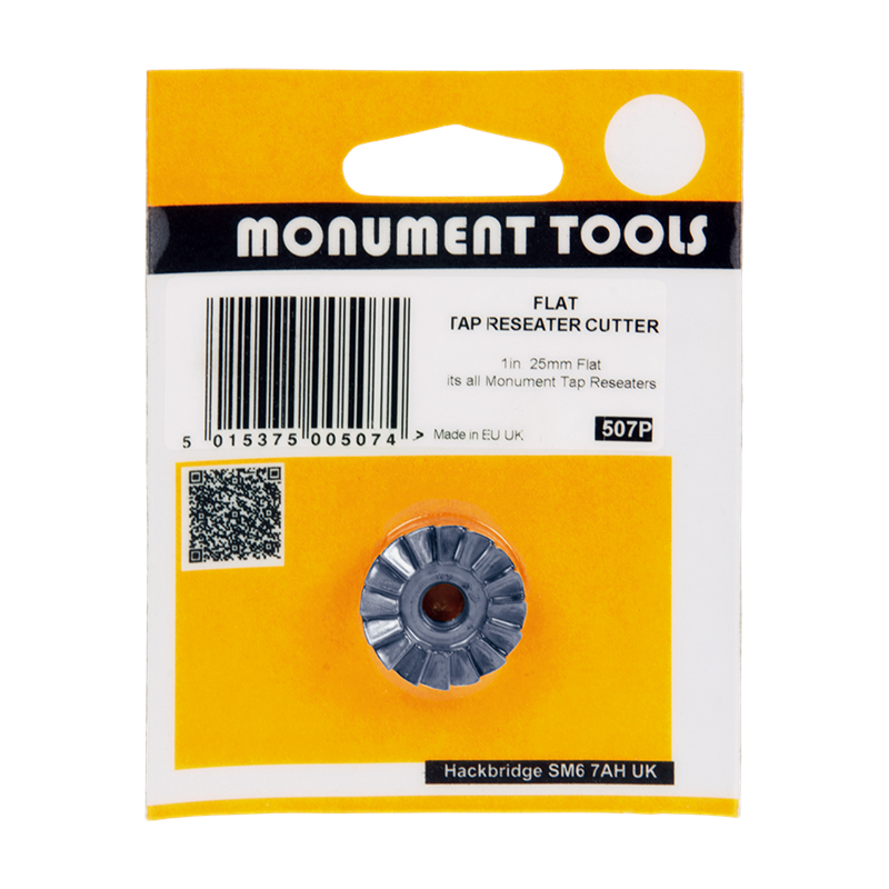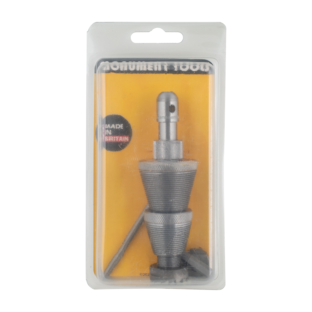 The Monument Pro Tap Reseater re-cuts the seats of leaking taps and is suitable for hand or power operation. Tapered cones screw into the top of the tap body, provided it is threaded to the top. Compatible with most 1/2” and 3/4” taps, including older BS 1010 series models. Supplied with 2 tapered threaded cones, 2 case-hardened flat cutters 19mm (3/4”) and 25mm (1”), a 6mm hex power bit, and a tommy bar. Designed to provide precise seat re-cutting for a reliable tap repair. Made in Britain.