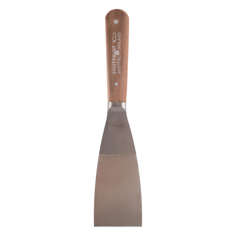 Footprint Stripping Knives are a versatile tool that can be used in various domestic and industrial applications, with their primary use being the removal of wallpaper. These knives are made from special spring-tempered carbon steel to keep the blade rigid and ensure superior strength. The hardened and tempered one-piece blade is machine-ground to provide a sharp edge for removing paint and wallpaper. The blade is also polished to prevent premature rust, ensuring its longevity. The handle of the stripping knife is designed for comfort and durability, with hardwood scales riveted to the handle to create a non-slip grip. With all of these features, the Footprint Stripping Knife is a reliable and efficient tool that can be used for many tasks beyond wallpaper removal.