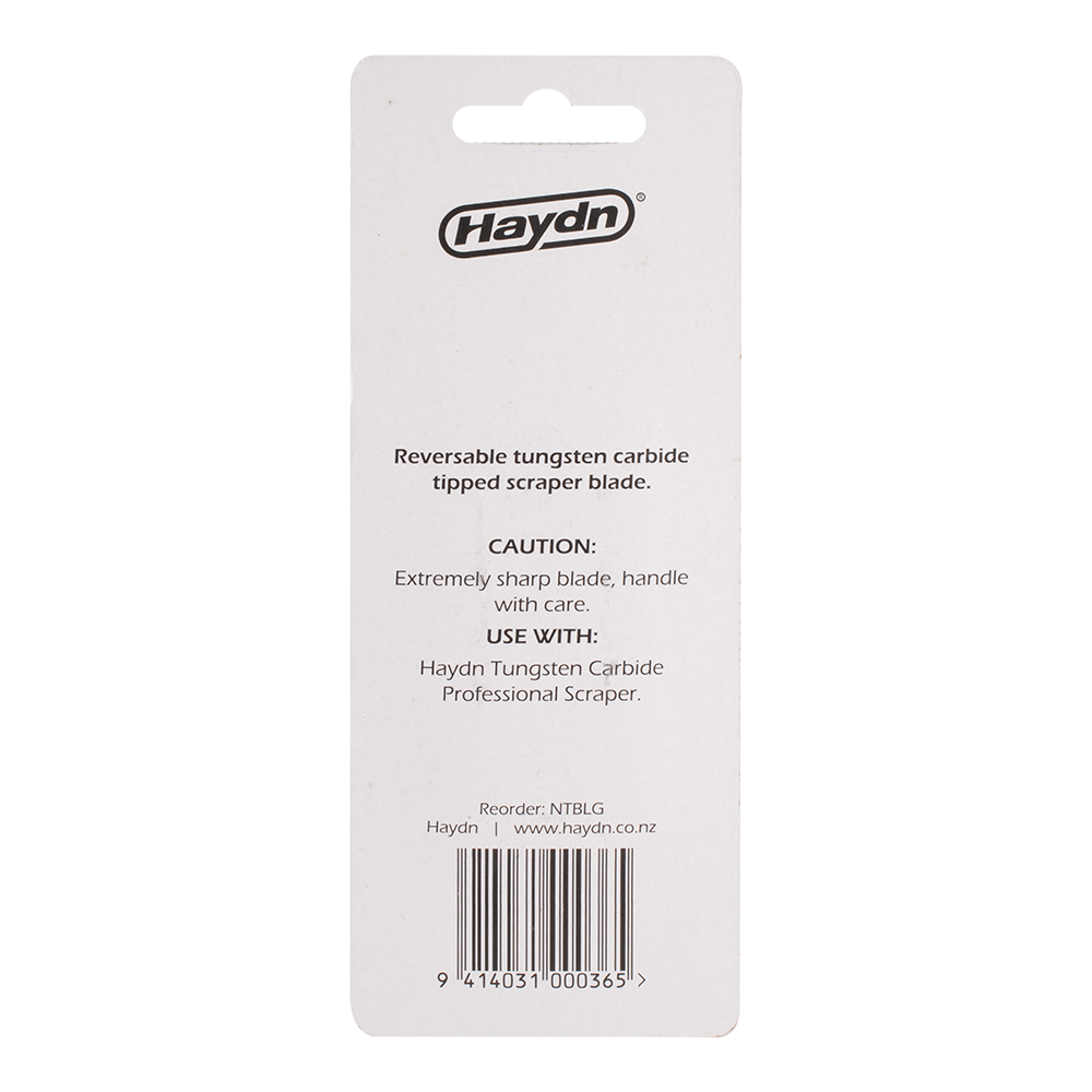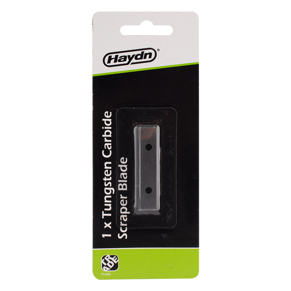 The Haydn Tungsten Carbide Tipped Flat Scraper Blade is a replacement blade for the HD50 Flat Scraper. The blade is used to effectively remove old paint, varnish, and glue from any wooden surface. The blade is 50mm wide, for an increased surface coverage. This scraper is specifically designed for wooden surfaces, and its tungsten carbide tip ensures that it maintains its scraping edge for optimal performance.