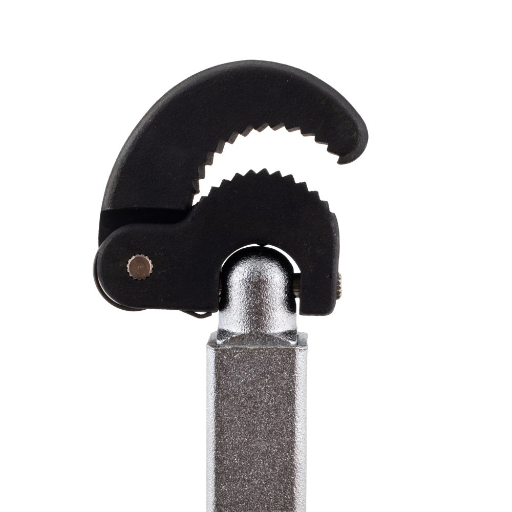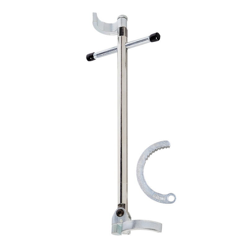 The Stanway Trade Telescopic Basin Wrench is perfect for tackling nuts and fittings in tight, hard-to-reach spaces. Ideal for under-sink work, wash basins, ballcocks, and flush valves, it features a durable telescopic handle with four adjustable lengths: 225mm, 285mm, 345mm, and 405mm. The spring-loaded jaw self-adjusts to fit 10–32 mm nuts, while strong forged steel jaws provide long-lasting durability. A 180° pivoting head allows positioning at any angle, and the sliding T-bar handle delivers excellent leverage and grip, making plumbing tasks faster, easier, and more precise.