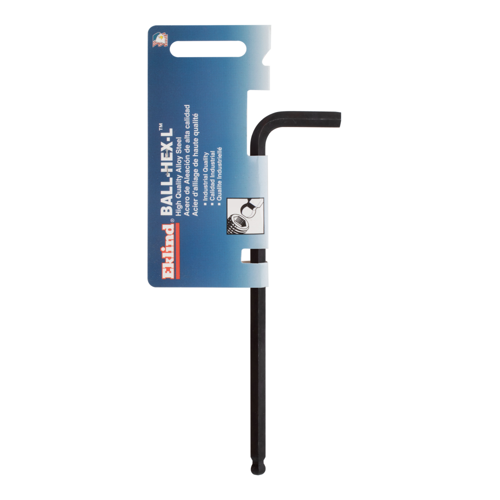 Eklind Long Series Ball Hex L-Keys are high-quality, industrial-grade professional tools made in the USA. Crafted from Eklind® Alloy Steel, they are heat-treated for optimal strength and ductility, ensuring durability and reliability. The Eklind® Black Finish provides superior rust resistance, extending their lifespan. Eklind® Ball-Hex Keys will drive a fastener at up to a 30 degree angle. Designed for professional use, the long series offers increased leverage, allowing for greater torque when tightening or loosening bolts. Their extended length also provides deep access, making them ideal for reaching recessed fasteners. Each key is individually carded.