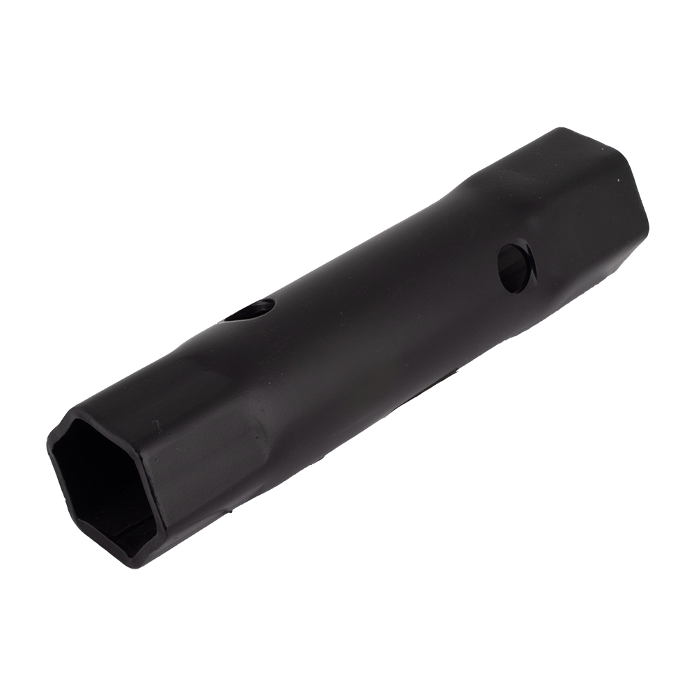 Melco AF Double-Ended Tube Spanners, also known as box spanners, feature two hexagonal profiles at each end of the tube. Crafted from heavy gauge steel pressed using air compression, these tools boast durability and reliability. Manufactured in England, Melco ensures quality-assured products. The spanners excel in removing fittings located in challenging, hard-to-reach areas. Operated by a T-bar fitting through holes drilled at right angles to the tube, allowing efficient twisting. The long shape of these spanners proves particularly advantageous in navigating tight recesses, making them indispensable for tasks in vehicle machinery and plumbing. These TA Series are measured across the hexagon flats in imperial measurements.