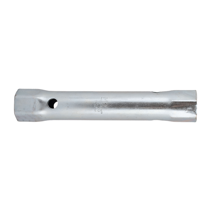Melco AF Double-Ended Tube Spanners, also known as box spanners, feature two hexagonal profiles at each end of the tube. Crafted from heavy gauge steel pressed using air compression, these tools boast durability and reliability. Manufactured in England, Melco ensures quality-assured products. The spanners excel in removing fittings located in challenging, hard-to-reach areas. Operated by a T-bar fitting through holes drilled at right angles to the tube, allowing efficient twisting. The long shape of these spanners proves particularly advantageous in navigating tight recesses, making them indispensable for tasks in vehicle machinery and plumbing. These TA Series are measured across the hexagon flats in imperial measurements.