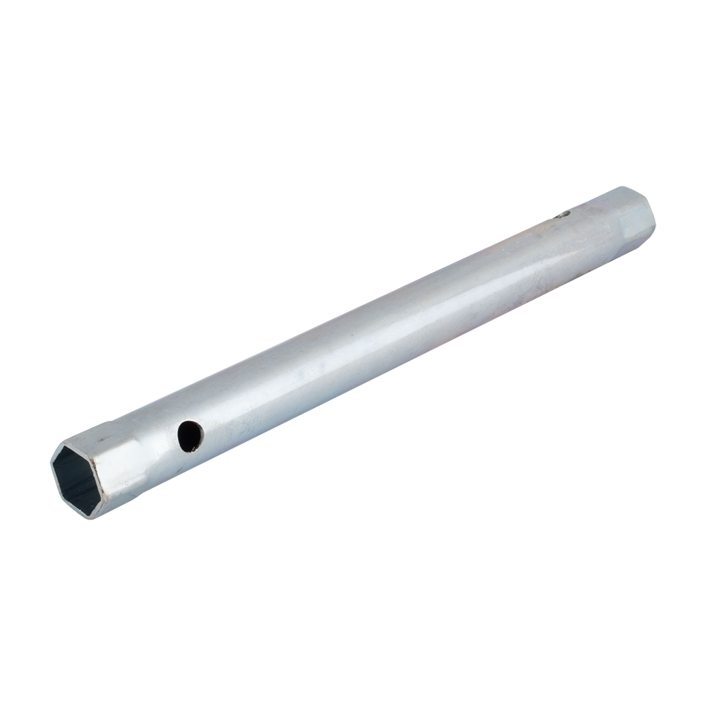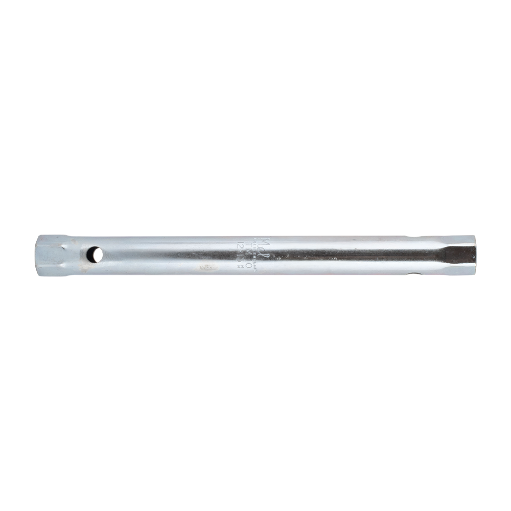 Melco Double-Ended Tube Spanners, also known as box spanners, feature two hexagonal profiles at each end of the tube. Crafted from heavy gauge steel pressed using air compression, these tools boast durability and reliability. Manufactured in England, Melco ensures quality-assured products. The spanners excel in removing fittings located in challenging, hard-to-reach areas. Operated by a T-bar fitting through holes drilled at right angles to the tube, allowing efficient twisting. The long shape of these spanners proves particularly advantageous in navigating tight recesses, making them indispensable for tasks in vehicle machinery and plumbing. These TM Series are measured across the hexagon flats in metric measurements.