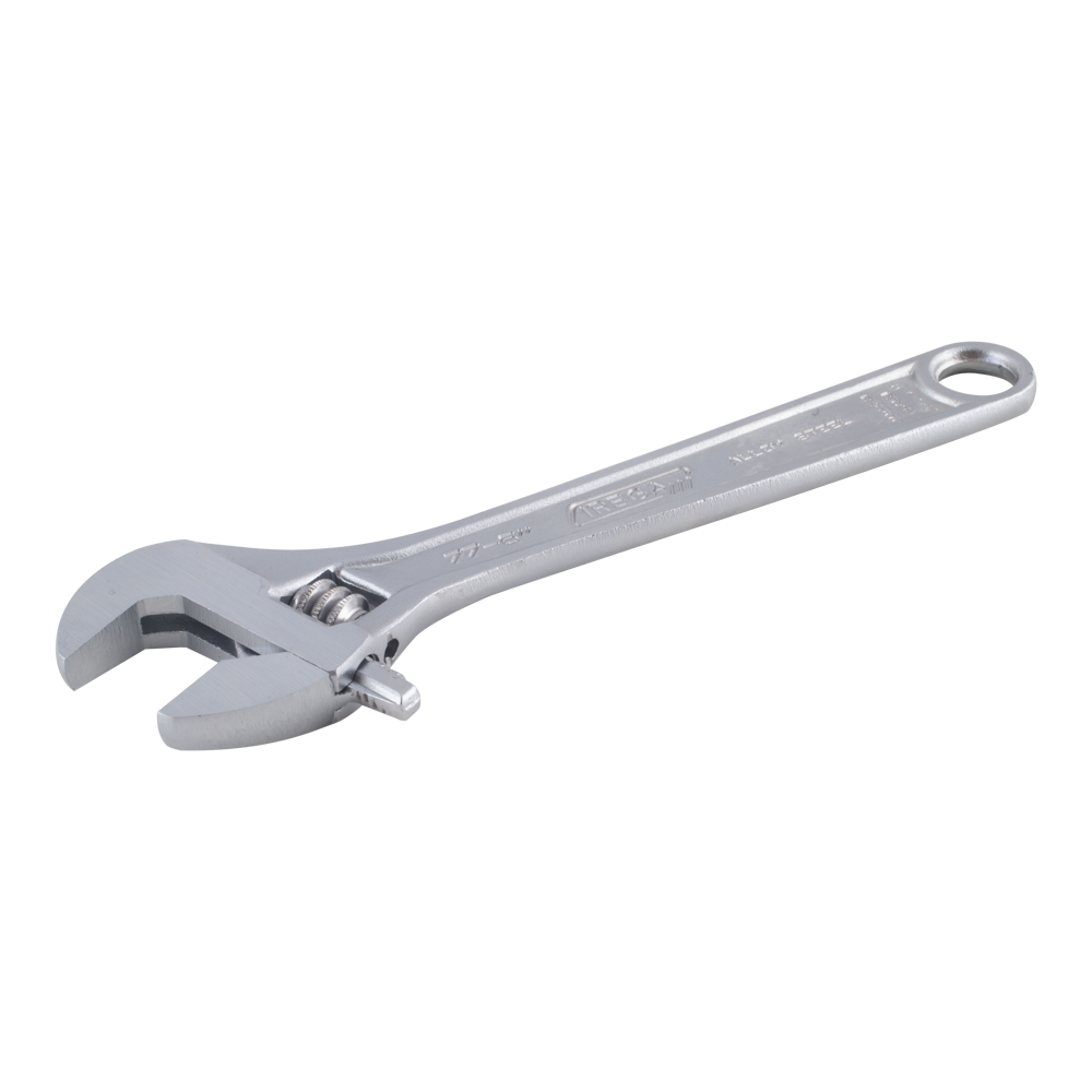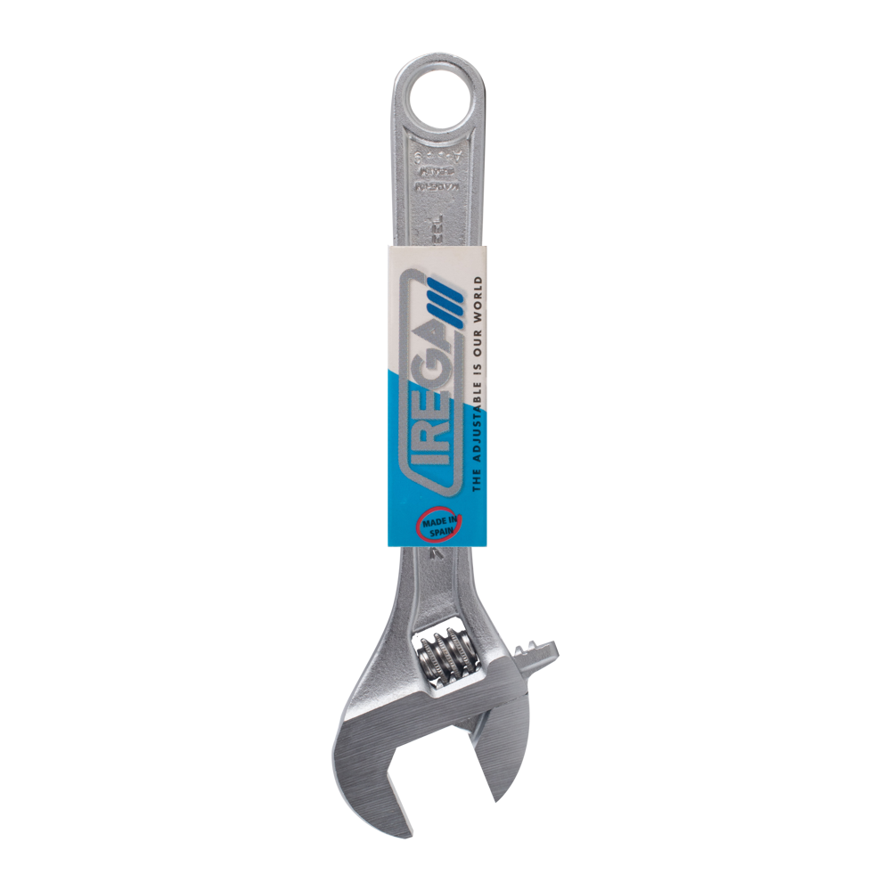 The Irega Model 77 Adjustable Wrench is the best value for money. Crafted from chrome alloy steel, it boasts durability that’s second to none. Its ergonomic handle ensures comfortable usage. With non-protruding jaw shanks and perfectly parallel jaw surfaces, it offers an impeccable grip on nuts. Thanks to precision-ground jaw slides, adjustments are smoother and more accurate. For extreme conditions, it offers double security with a threaded pin and visible stake. The chrome alloy steel construction ensures top-notch quality, enhanced by a triple-coated chrome finish for maximum rust resistance. Available in sizes ranging from 4” to 24”, each tool is meticulously inspected to guarantee total customer satisfaction. Manufactured according to the strictest international standards. 100% made in Spain.