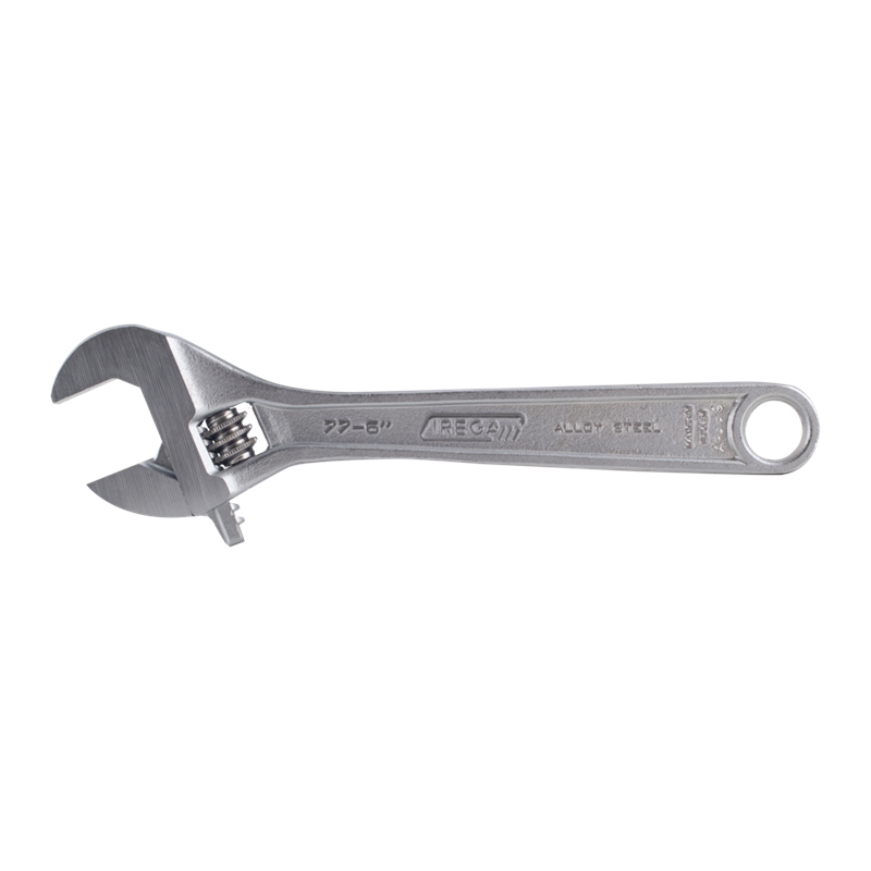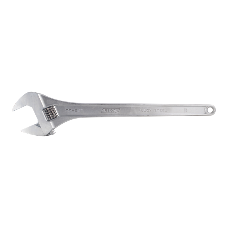 The Irega Model 77 Adjustable Wrench is the best value for money. Crafted from chrome alloy steel, it boasts durability that’s second to none. Its ergonomic handle ensures comfortable usage. With non-protruding jaw shanks and perfectly parallel jaw surfaces, it offers an impeccable grip on nuts. Thanks to precision-ground jaw slides, adjustments are smoother and more accurate. For extreme conditions, it offers double security with a threaded pin and visible stake. The chrome alloy steel construction ensures top-notch quality, enhanced by a triple-coated chrome finish for maximum rust resistance. Available in sizes ranging from 4” to 24”, each tool is meticulously inspected to guarantee total customer satisfaction. Manufactured according to the strictest international standards. 100% made in Spain.