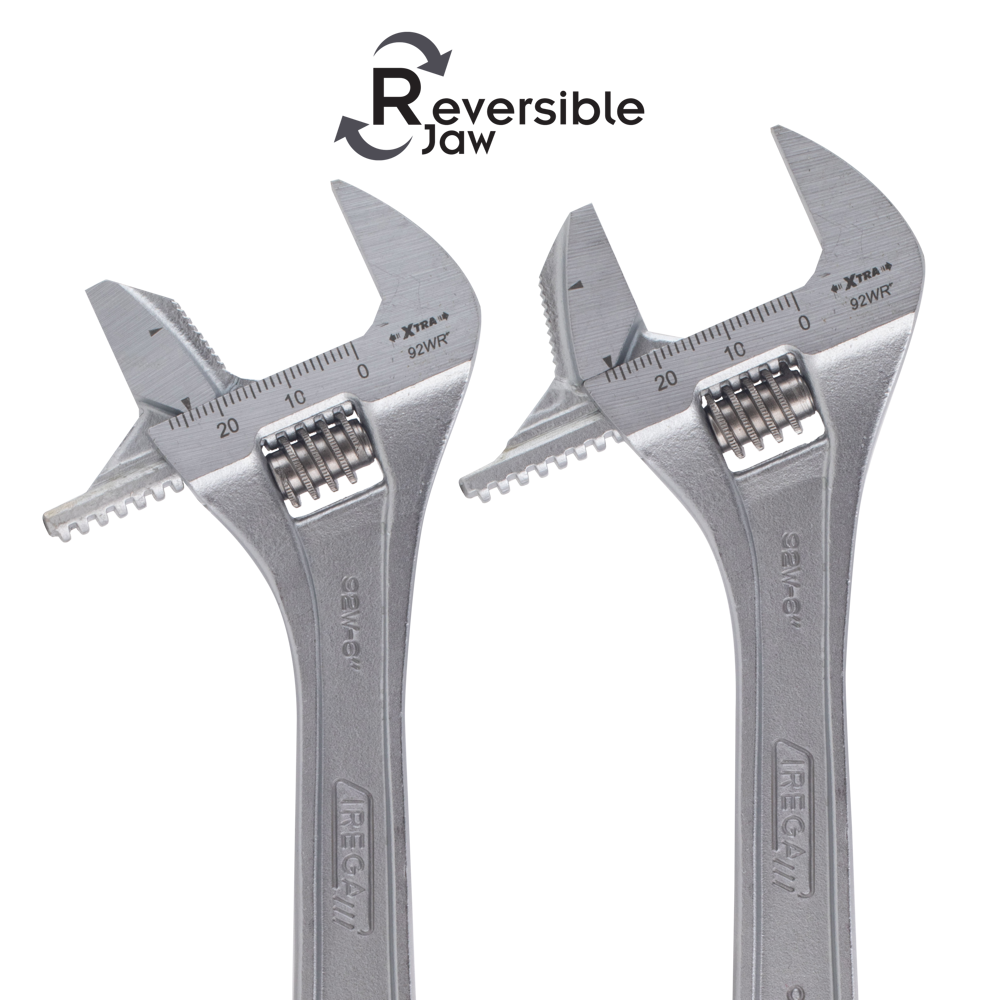 • Reversible Jaw and Xtra capacity allows for working with bigger diameter nuts and pipes with the same adjustable wrench.