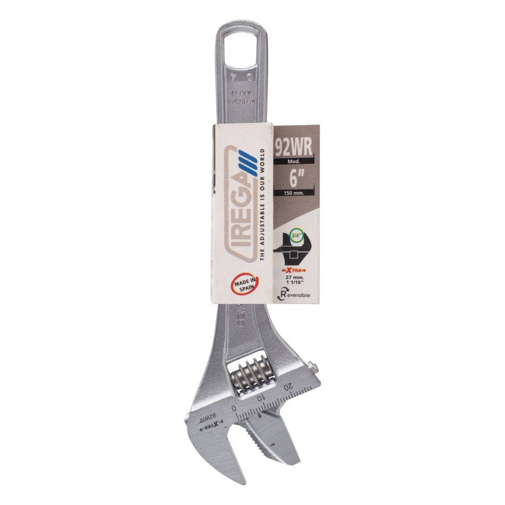 Introducing the Irega Reversible Jaw Adjustable Wrench - a versatile tool designed for unparalleled performance. Its unique Reversible Jaw and Xtra capacity redefine convenience, enabling seamless work on larger diameter nuts and pipes using a single wrench. Equipped with a dual scale, millimeters on the front and inches on the back, ensuring precision in every use. Crafted from top-notch Chrome Vanadium Steel, it guarantees lasting quality and robustness. This professional-grade adjustable wrench thrives as a multipurpose companion, perfectly adept at handling objects of cylindrical shapes. Boasting exceptional ergonomics, it’s light, compact, and an epitome of comfort. With manufacturing adhering to the most rigorous International Standards, including UNE 16532, ISO 6787, BS ISO 6787, ASME B107.100, and DIN 3117, Irega proudly champions a 100% Quality Assured legacy.