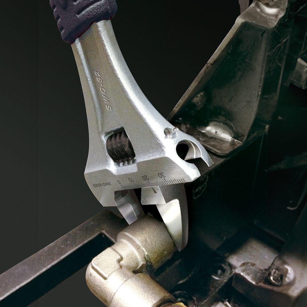 - 50% lighter than standard adjustable wrenches (12”) which has smaller opening!