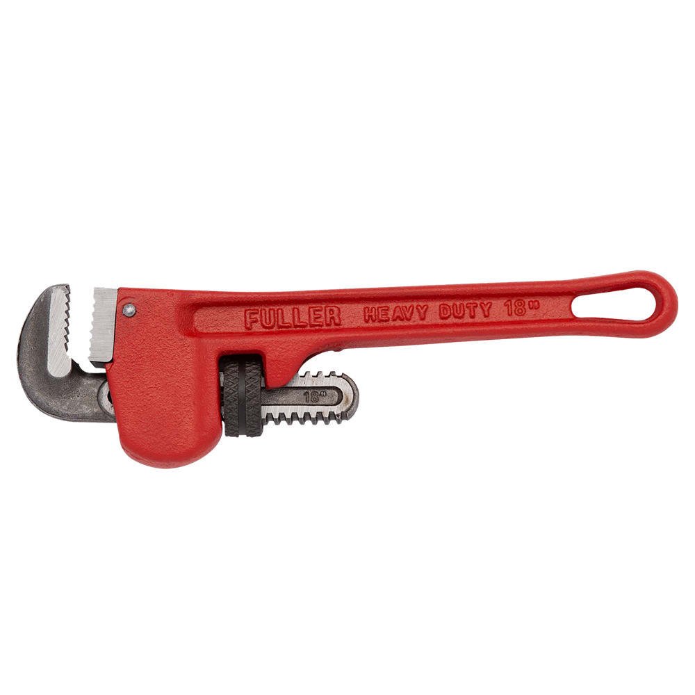 Pipe wrench with drop forged alloy steel jaws that have been precision milled.