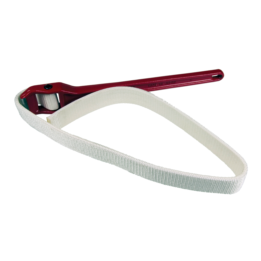 Strong woven nylon strap with special coating gives a strong tight grip and protects marring. Strap adjusts fast and easy. Works in the tightest quarters can be reached with one hand.