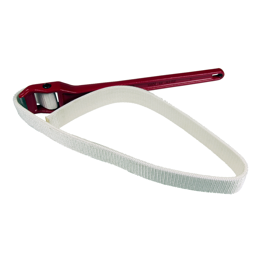 This Strap Wrench features a forged I-Beam handle. Head and I-Beam in one piece gives maximum strength. Strong woven nylon strap with special coated gives strong tight grip and protects marring. Strap adjusts fast and easy. Works in the tightest quarters can be reached with one hand.