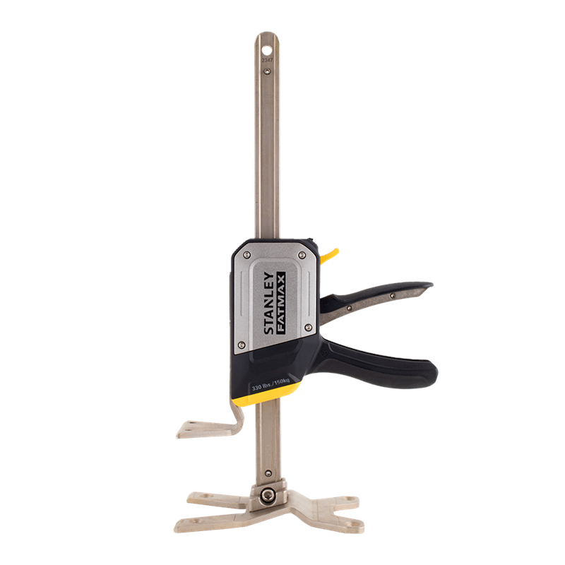 The STANLEY® FATMAX® TradeLift™ Twin-Pack is a versatile handheld tool for lifting, leveling, holding and spreading of heavy or awkward objects such as appliances, sheet materials or furniture – a real life saver when you're working alone. Engineered for safety, this professional, heavy-duty tool enables easy hands-free lifting up to 150kg, to a maximum height of 220mm. The TradeLift™ is perfect for jobs like hanging doors, installing kitchen cabinets and appliances and fitting windows in all environments, with enclosed metal plate housing to enhance durability and prevent dust entering the tool. The robust lifting tool can be operated by hand or foot, with an ergonomic overmoulded handle providing extra grip, comfort, and control. A fine adjuster lowers the load by up to 2.5mm per toggle for precision levelling and spacing, with a full release button safely recessed to avoid accidental activation. The large base plate with angled edge slides easily under low objects and reduces the risk of tipping, with four screwholes countersunk into the base to anchor the lift for maximum stability.
