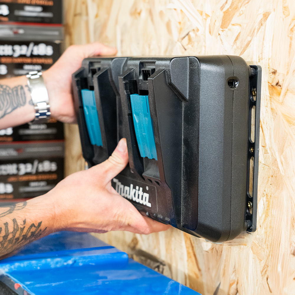 StealthMounts Charger Mount compatible with the Makita DC18RD Double Charger. Mount your charger to a workshop wall, in a tool trailer or a panel in your work van with due care. Always know where your charger is safe, secure and out of the way allowing for clear worktop space. Made in Great Britain our Charger Mounts are made using extremely durable injection moulded ABS plastic with countersunk screw holes to allow for firm mounting.