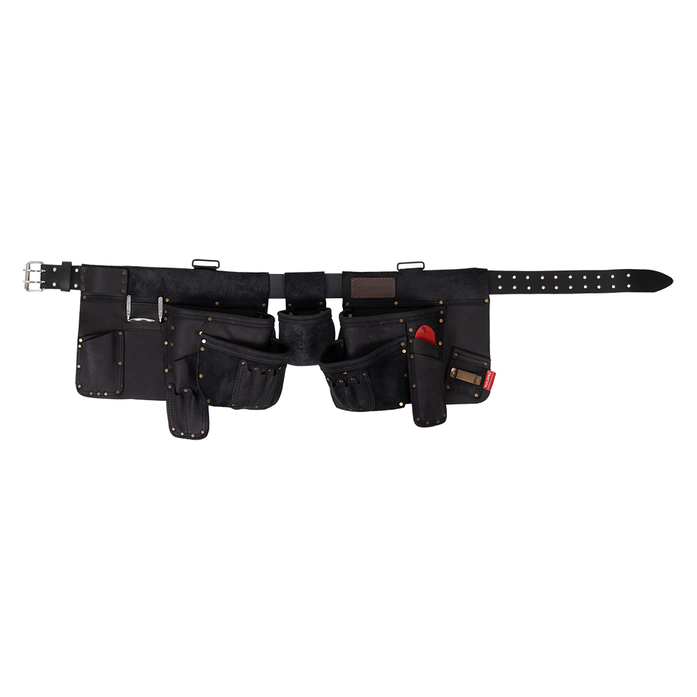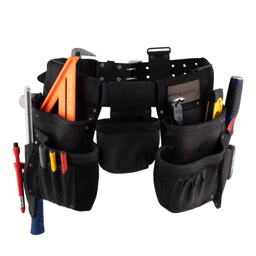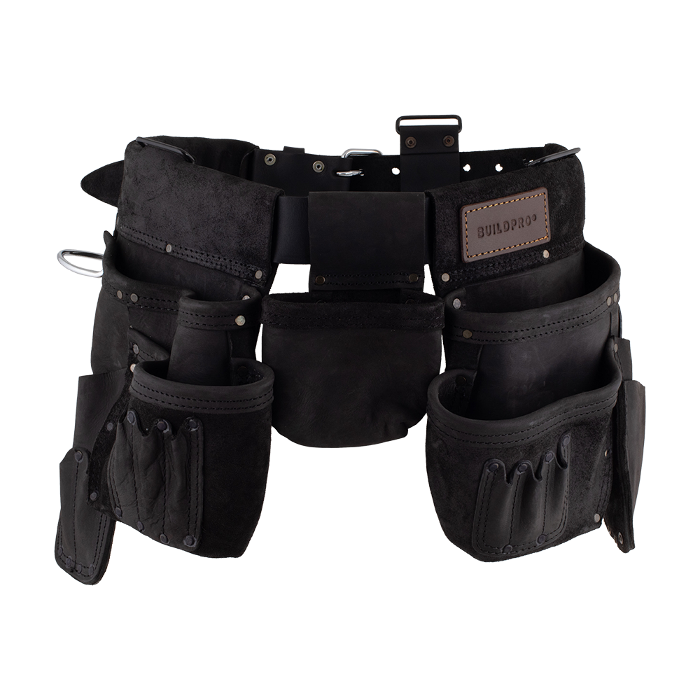 The BuildPro ‘Gladiator’ Tool Belt is a premium, hand-crafted tool belt made from full grain leather for maximum durability. It features a 50mm heavy-duty, replaceable leather belt, and includes metal D-Rings for attaching shoulder braces for extra support. The belt boasts premium quality hardware, double stitching, and heavy-duty rivets for reinforcement at high-stress points.