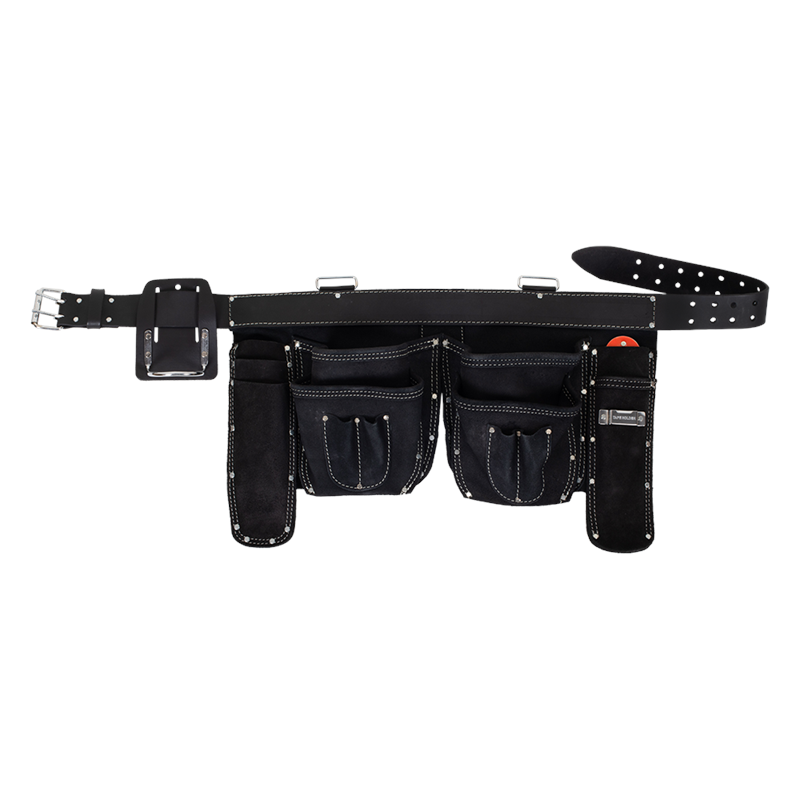 The BuildPro ‘Gladiator’ Tool Belt is a premium, hand-crafted tool belt made from full grain leather for maximum durability. It features a 50mm heavy-duty, replaceable leather belt, and includes metal D-Rings for attaching shoulder braces for extra support. The belt boasts premium quality hardware, double stitching, and heavy-duty rivets for reinforcement at high-stress points.