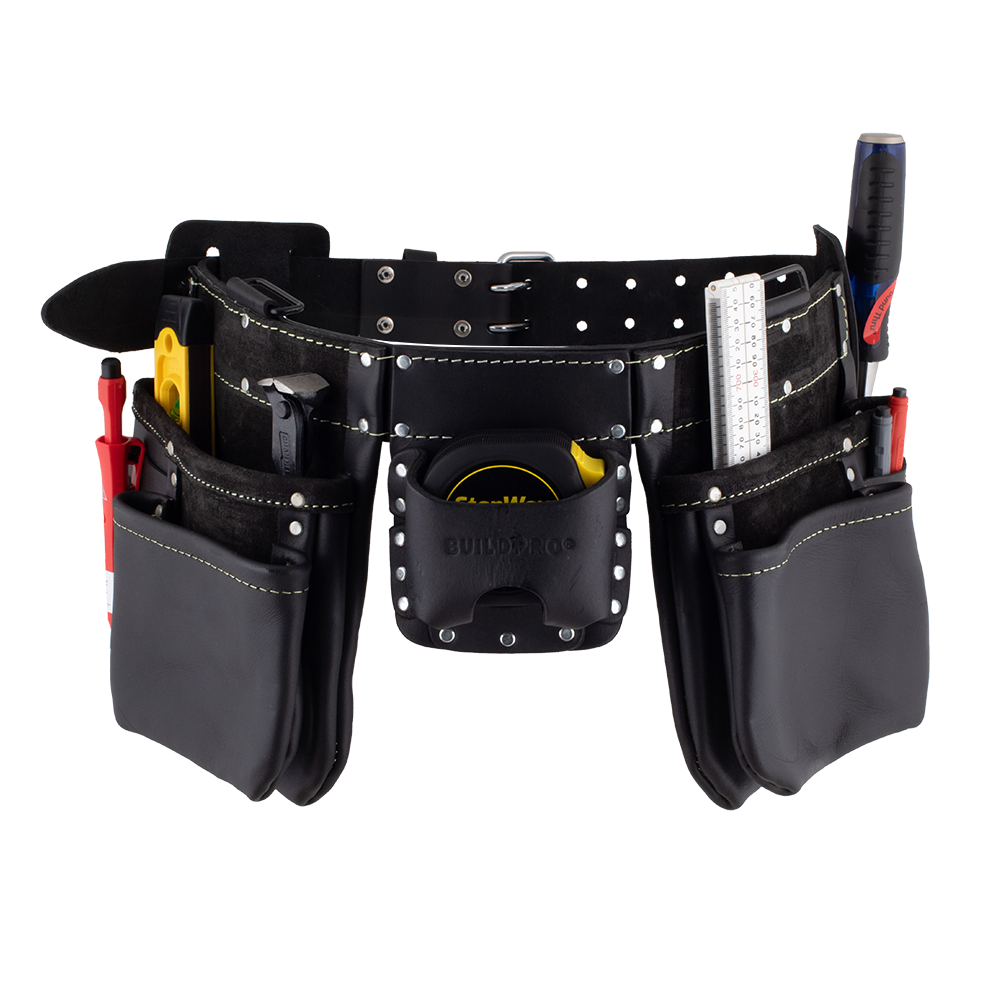 The BuildPro ‘Kakadu’ Tool Belt is a premium, hand-crafted tool belt made from full grain leather for maximum durability. It features a 50mm heavy-duty, leather belt, and includes metal D-Rings for attaching shoulder braces for extra support. The belt boasts premium quality hardware, double stitching, and heavy-duty rivets for reinforcement at high-stress points.