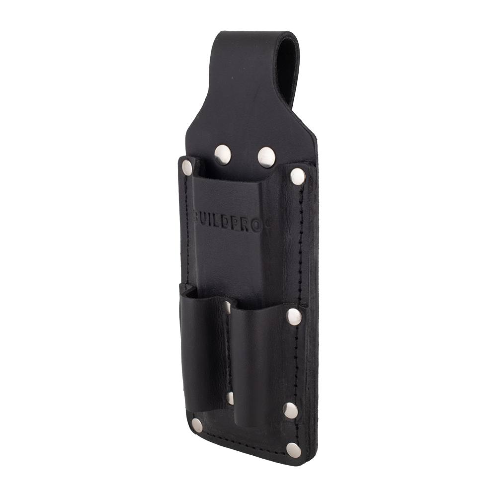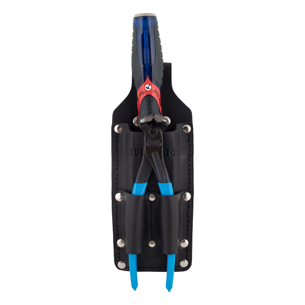The Buildpro Combined Chisel & Wire Cutter Holder is crafted from thick, full-grain premium leather for exceptional durability. Wet-molded to maintain its shape, it securely holds steel nippers by their ends and keeps chisels in place with internal reinforcement to prevent cutting through. Heavy-duty poly-thread stitching and German/Italian rivets ensure long-lasting strength. Each piece is hand-finished, edge-dyed, and individually inspected for quality.